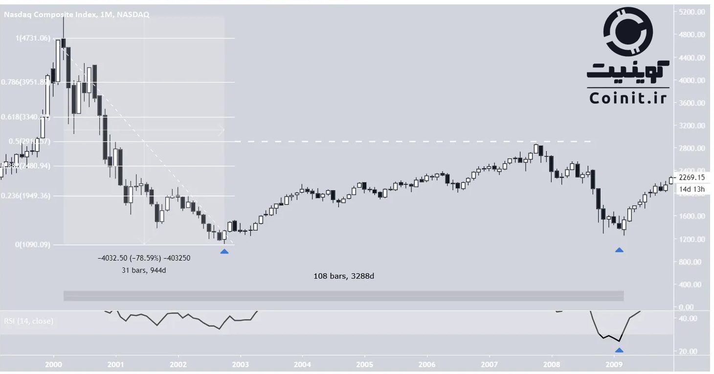 نظر شما در رابطه با شباهتهای احتمالی بین سقوط نزدک و سقوط ارزش بیت کوین چیست؟ آیا بیت کوین هم از این روند پیروی کرده و به زودی با یک بازار گاوی روبرو خواهد شد؟ نظرات و پیشنهادات خود را با تیم کوینیت در میان بگذارید.